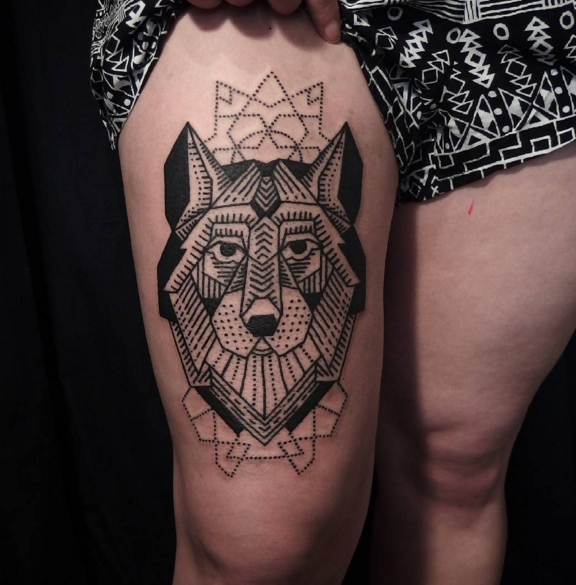 geometric wolf tattoo