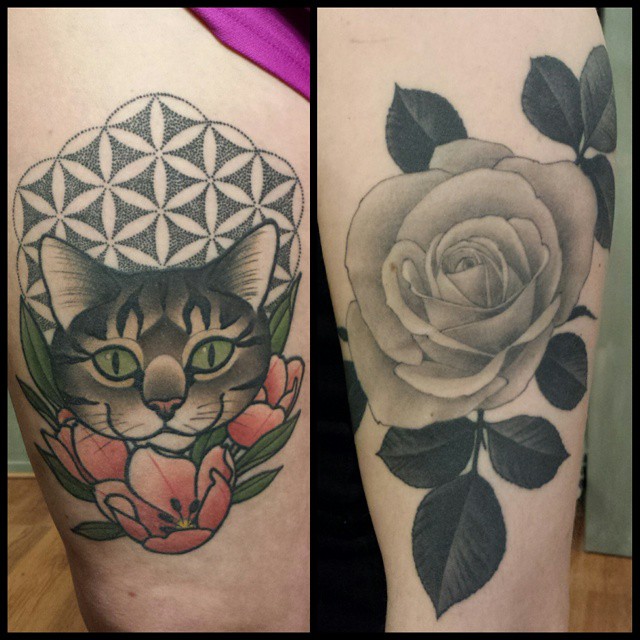 cat rose tattoo