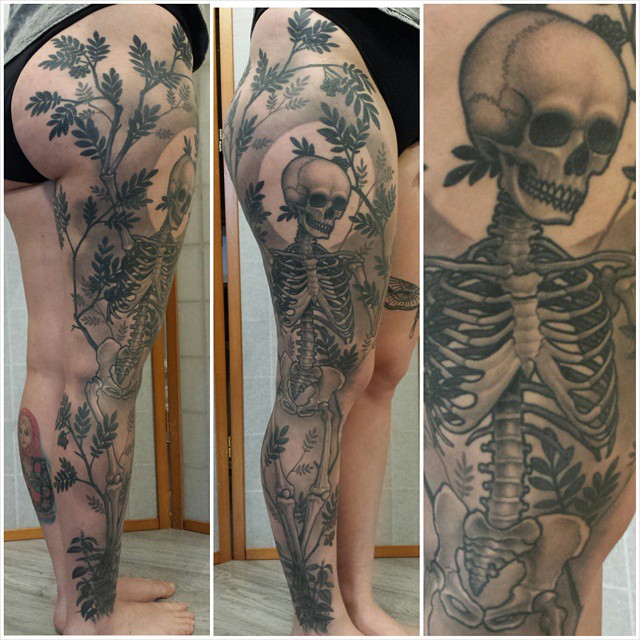 skeleton leg tattoo