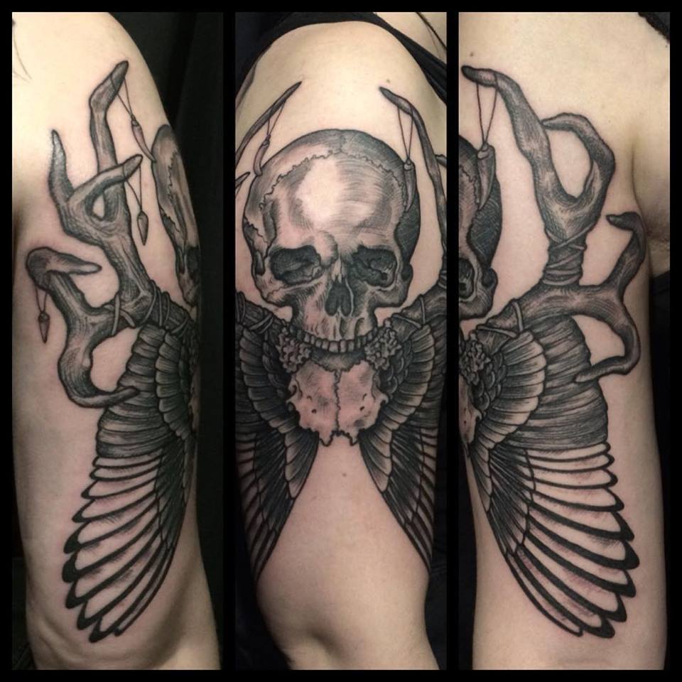 skull-antlers tattoo